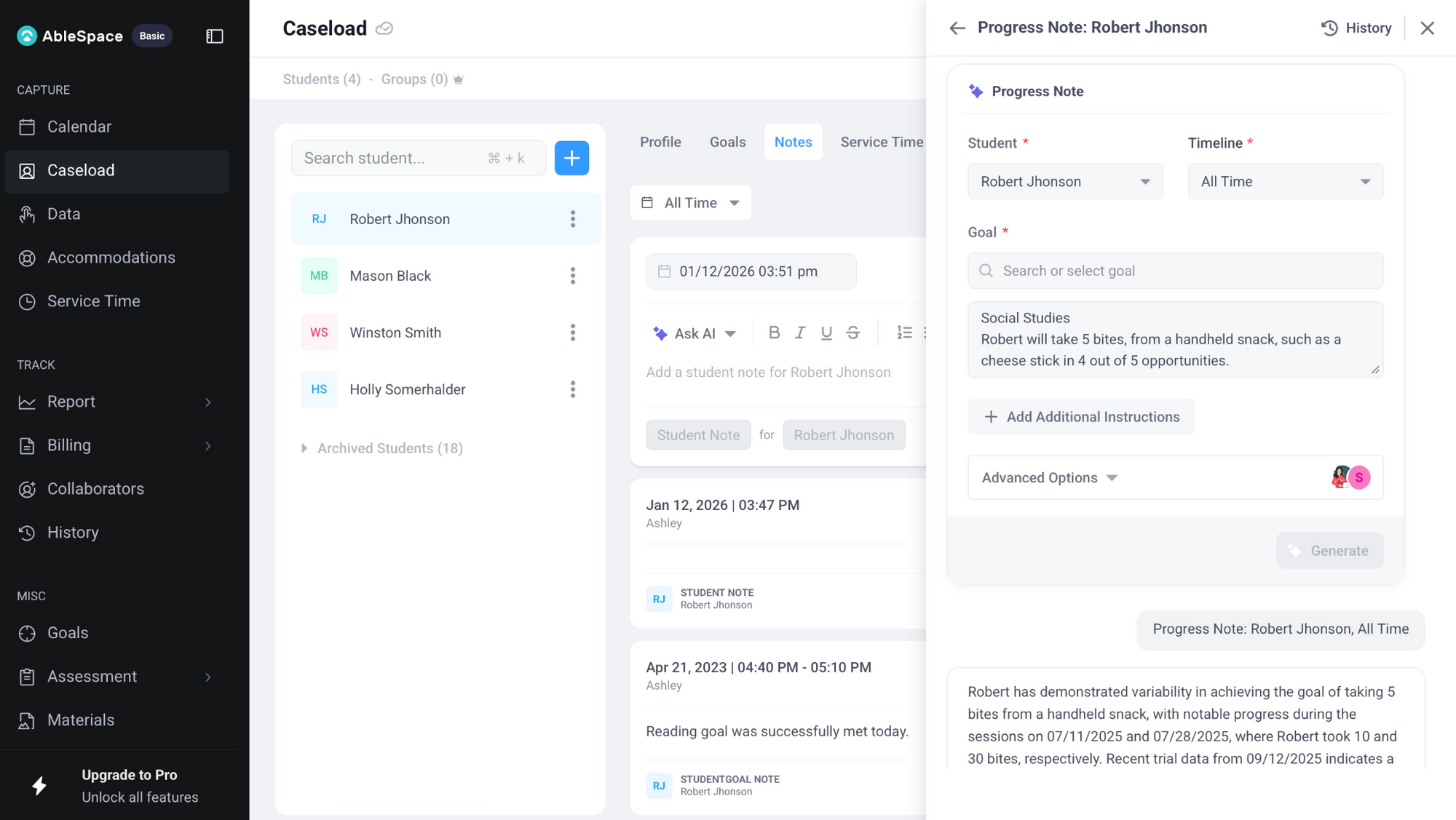 This is also where platforms like AbleSpace come in, since they centralize service minutes, goal data, and provider notes. With everything stored consistently, AI can work from a solid data set, producing insights that reflect your actual sessions rather than fragmented documentation.